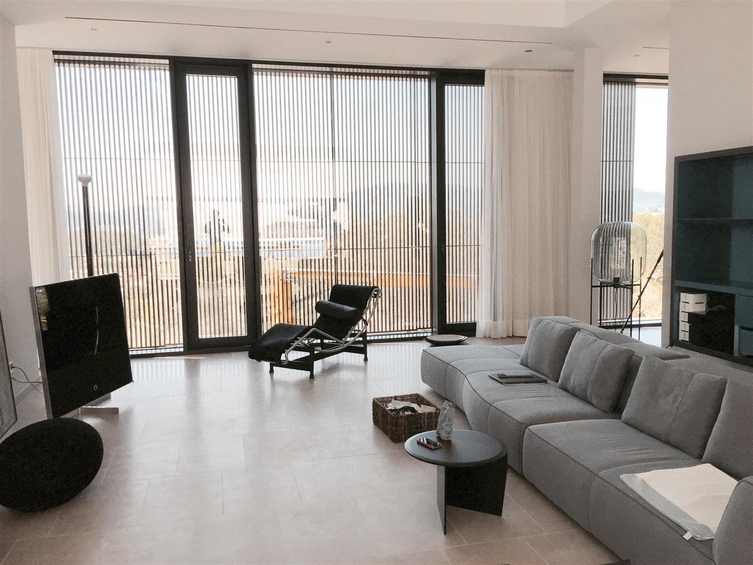 Hochkarätiger Naturstein in Fassade und Oberböden, dunkle Holz-Aluminium-Fenster, weisser Putz und die typischen Natursteinmauern bilden den Materialkanon des Anwesens. Die Terrassierung bildet atmosphärische Aufenthaltsbereiche, grandiose Ausblicke und Rückzugsorte.